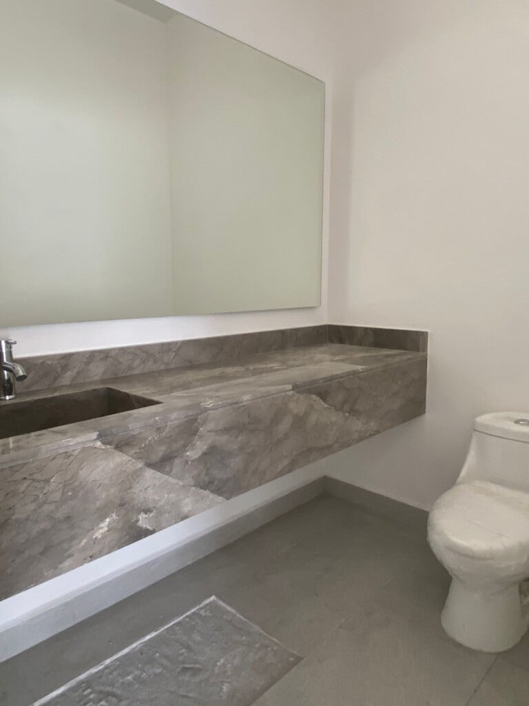 Planta Baja: Sala, comedor, cocina, recibidor, medio baño y cochera. Planta Alta: 3 recamaras con baño completo la principal con vestidor, estancia y lavandería. Incluye: cocina integral con cubierta de cuarzo, espejos y canceles de cristal templado en baños y roperias. Cuenta con pasillo lateral y firme en el jardín para área de asador.