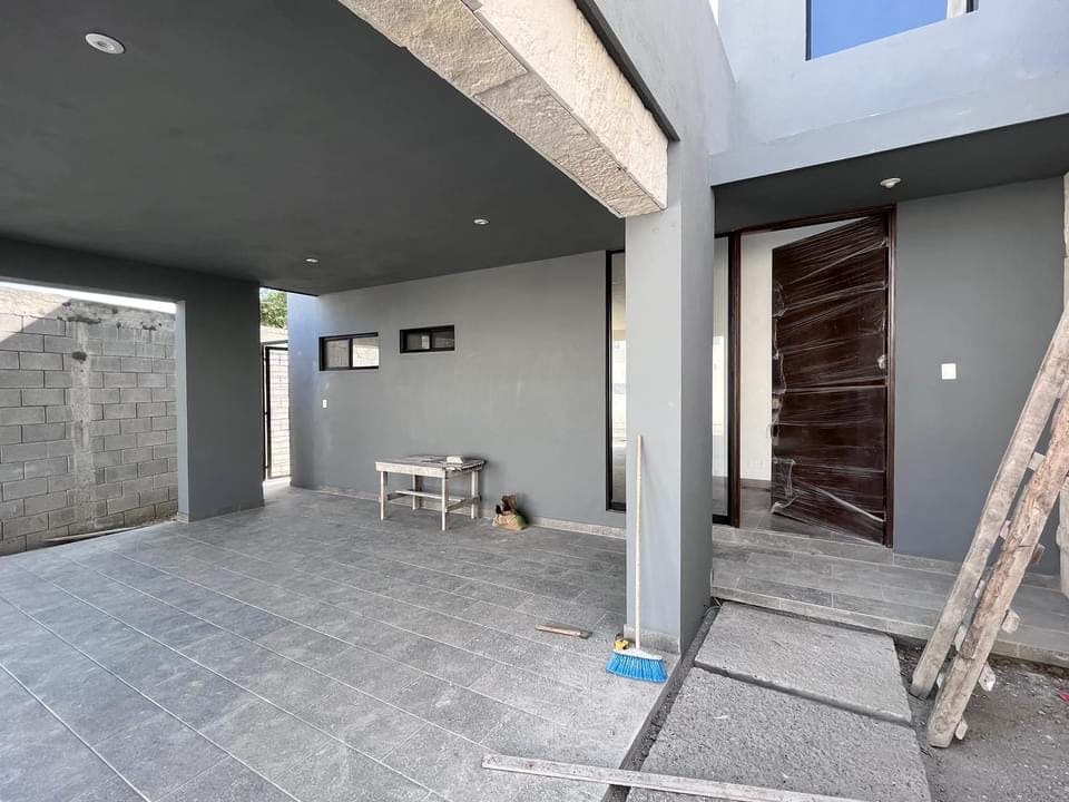 Cuenta con cochera techada para 2 autos con jardín frontal, fachada con acabados en piedra, recibidor a doble altura, amplio espacio para cocina en concepto abierto, comedor y sala con doble acceso al patio, medio baño de visitas, cuarto de servicio y pasillo independiente.
