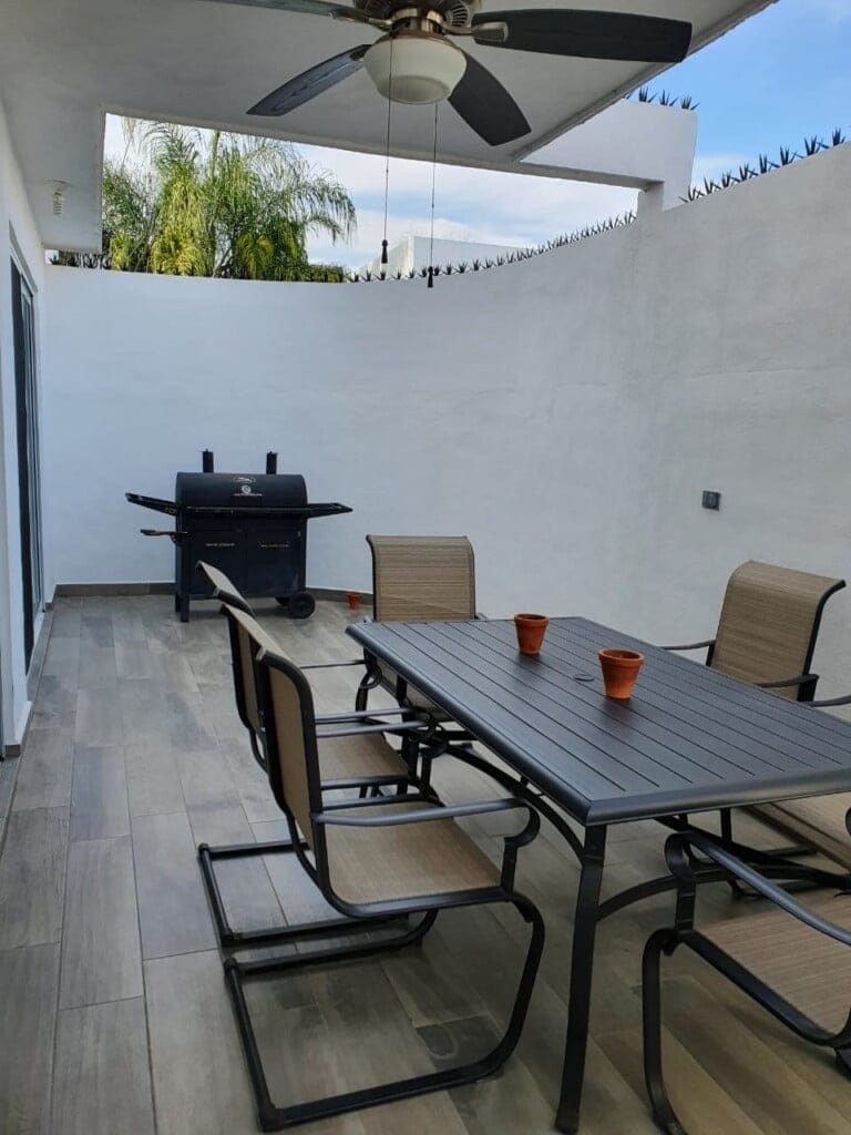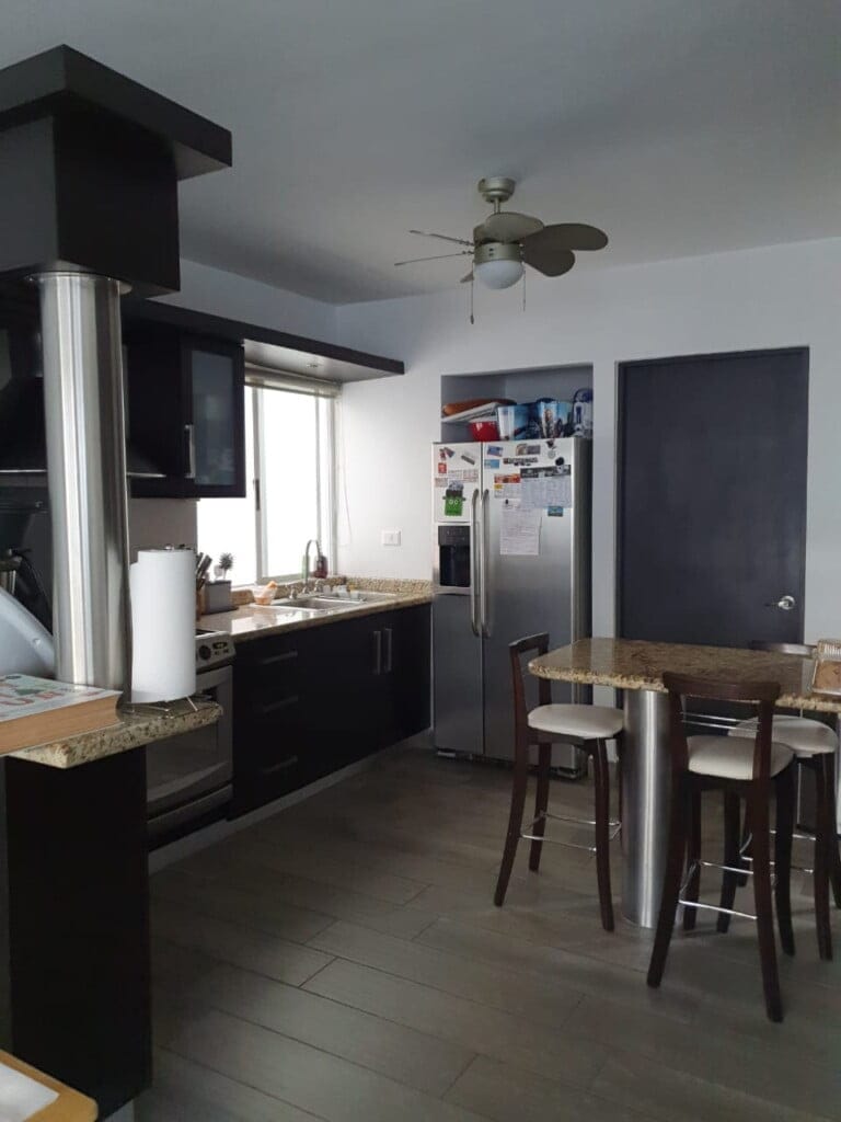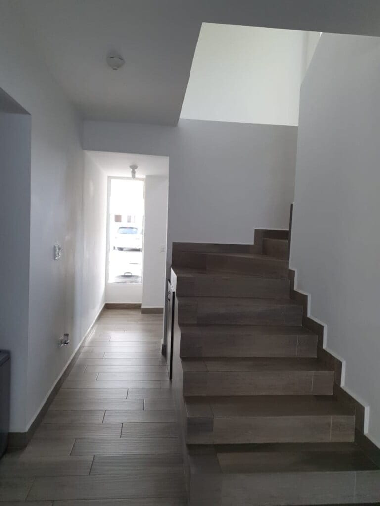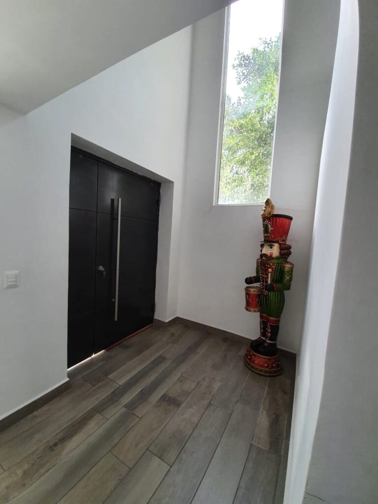 Casa en esquina de 2 niveles, cochera para 2 autos, 3 recámaras con baño completo, estancia, sala, comedor, 1/2 baño de visitas, cocina integral, lavandería, cuarto de servicio, patio trasero con piso de porcelantato tipo duela, pasillo lateral. Incluye, cocina integral con estufa, campana y horno, 5 minisplit, ventiladores de techo, excelente ubicación en esquina! fraccionamiento privado con vigilancia las 24hrs.